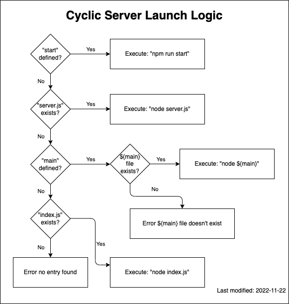 mainproperty does not exist in the thepackage.json, node's default behavior is to look for anindex.jsfile as the main entry point - If none of these have been satisfied, the runtime will produce a 500 error on requests